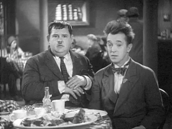 Ze worden achtervolgd door een dief, maar worden beschermd door een politieagent. Stan en Ollie delen een klapmaaltijd met de agent, maar helaas komt Stan erachter dat de portemonnee in feite van de agent is.